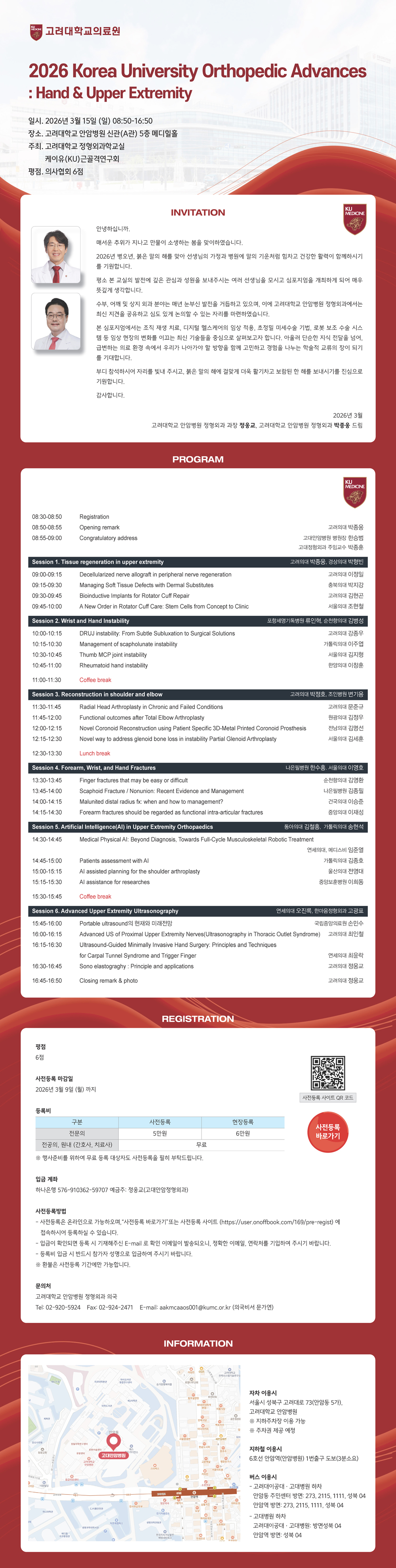 2026 Korea University Orthopedic Symposium: Hand & Upper Extremity 개최 및 등록 안내