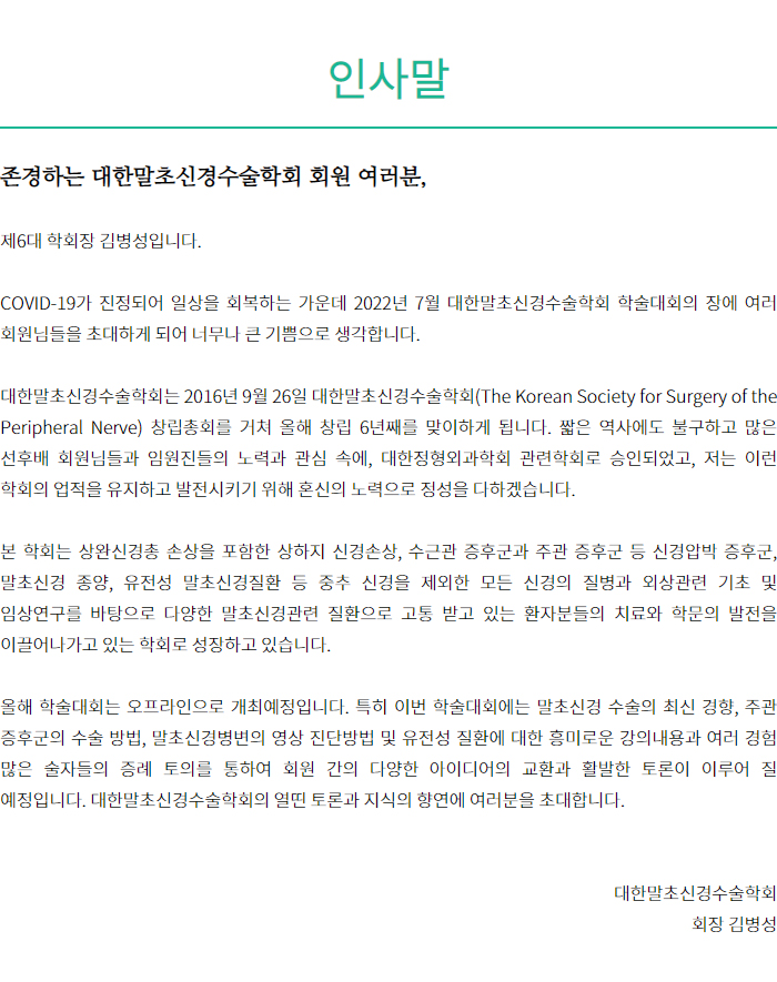 대한말초신경수술학회 학술대회