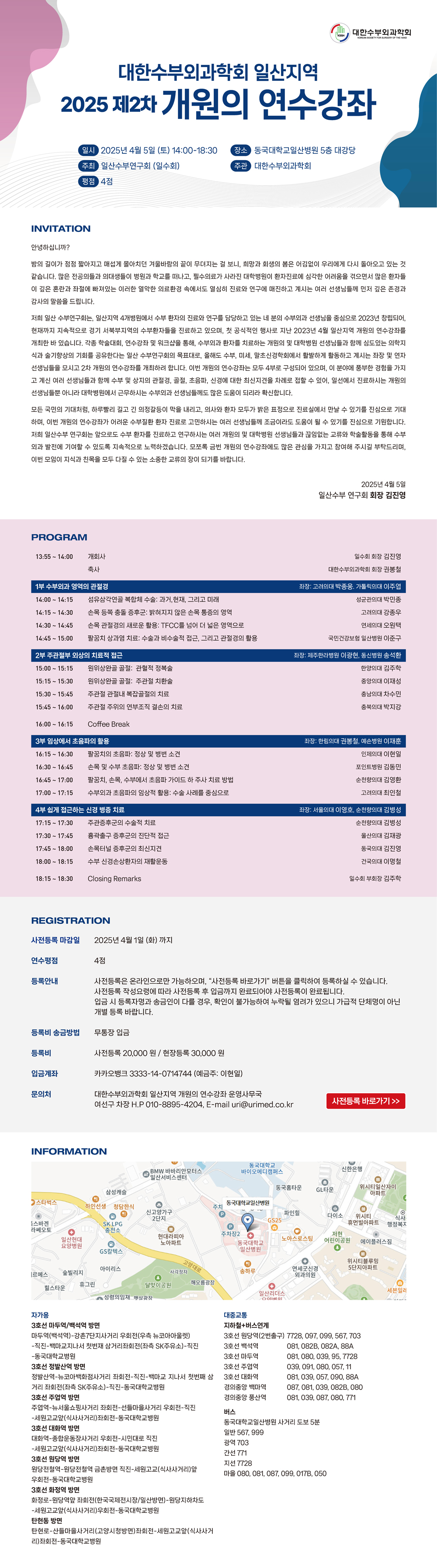 2025 대한수부외과학회 일산지역 제2차 개원의 연수강좌 안내