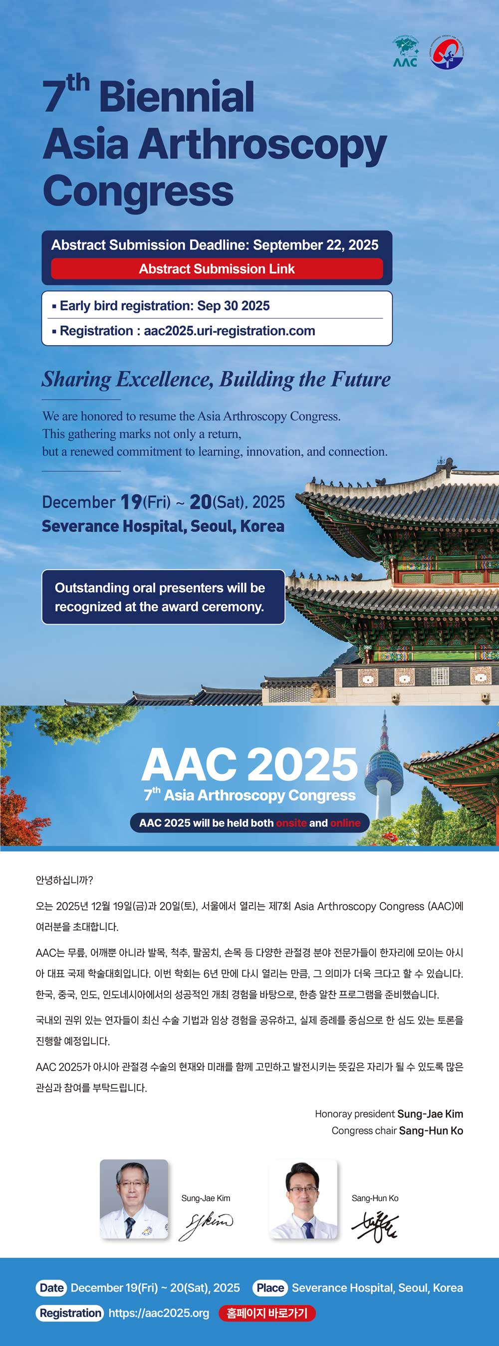 [세브란스관절경연구회] 2025 7th Biennial Asia Arthroscopy Congress 안내