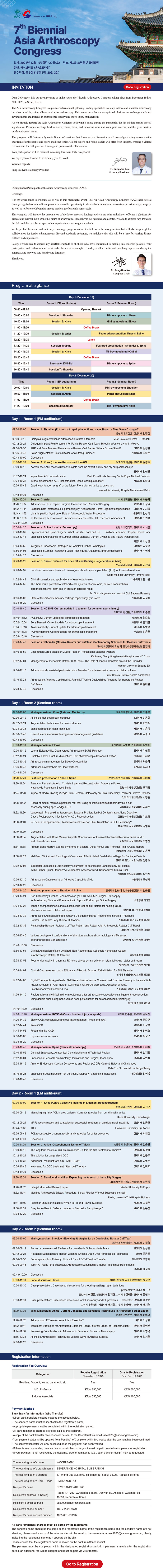 [세브란스관절경연구회] 7th Asia Arthroscopy Congress 사전등록 안내