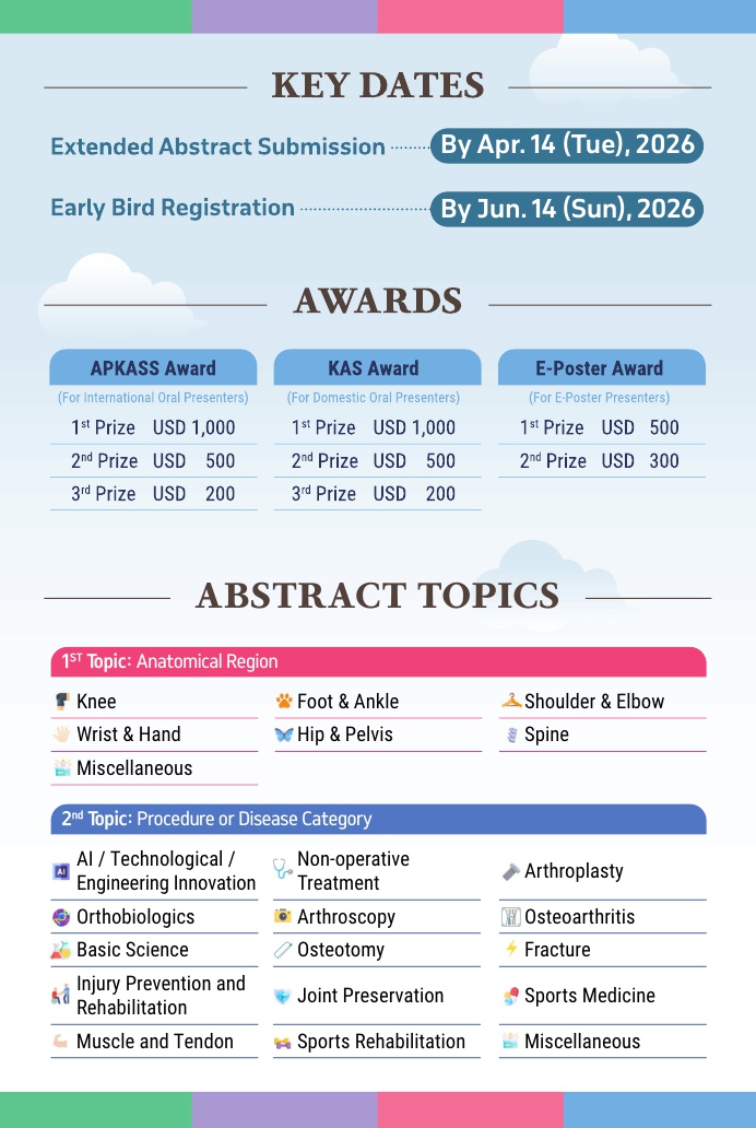 [대한관절경학회] APKASS 2026 Korea & ICKAS 2026 초록 접수 연장 안내