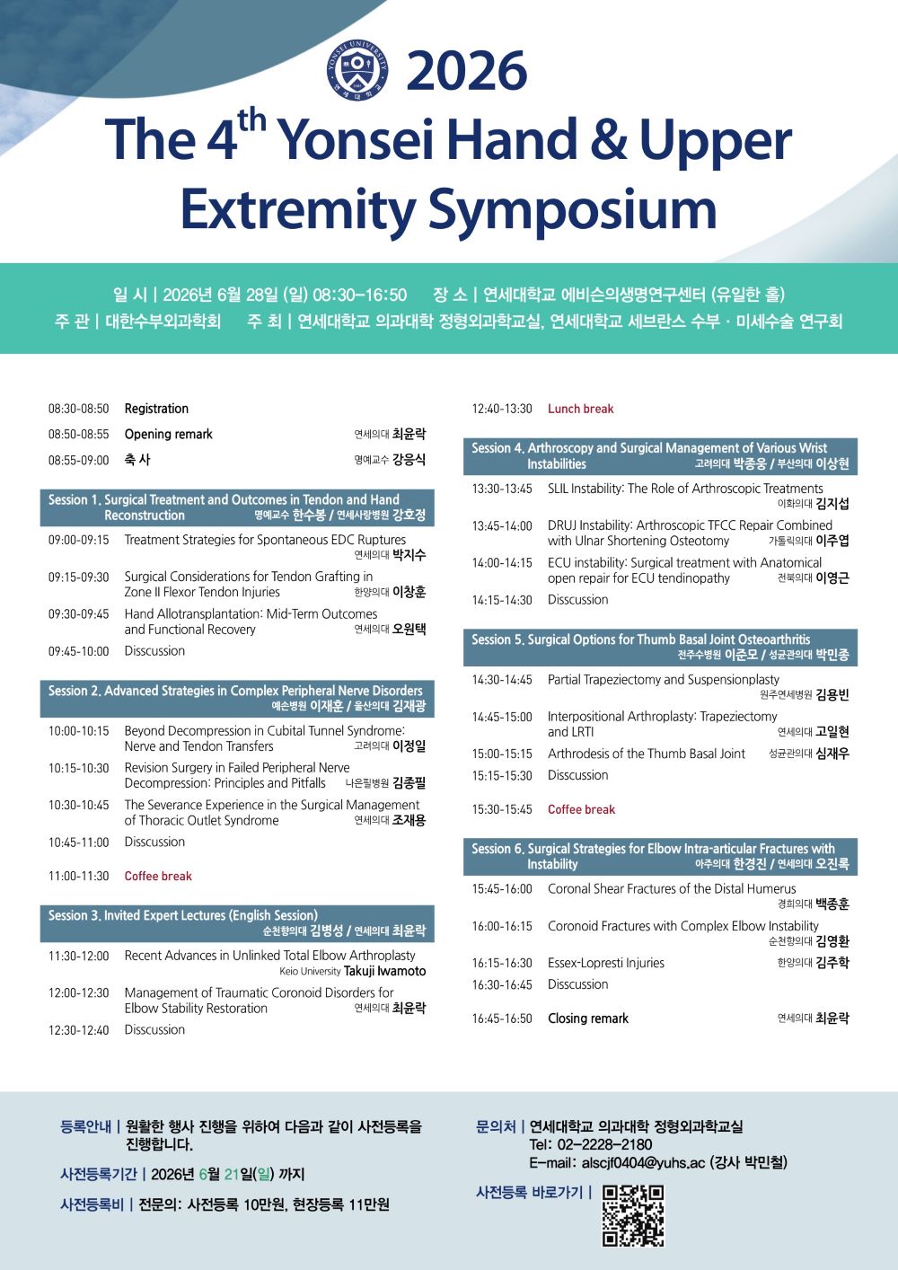 [연세대학교 정형외과학교실] 2026년 제4회 연세대학교 수부 및 상지 심포지엄